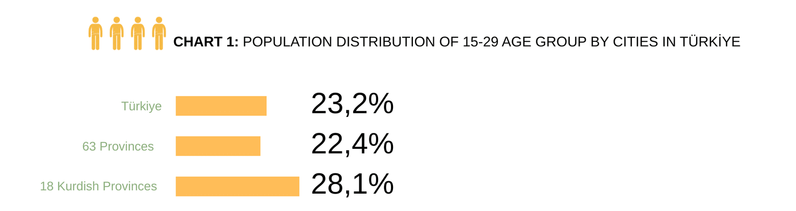 There are approximately 20 million young people between the ages of 15 and 29 in Türkiye. With a young population of nearly a quarter of the population, Türkiye is considered one of the youngest countries in the world and Europe. On the other hand, it is not easy to find official data on the Kurdish population in Türkiye, except for the 1927 census, which asked about ethnic and religious affiliation, and the 1965 census, which asked about mother tongue. According to both of these official data, the proportion of Kurds in Türkiye is around 7-9 percent.