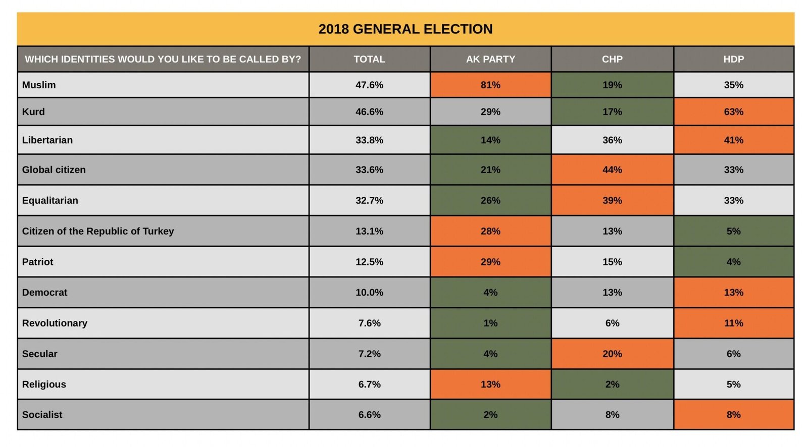 Tolerance for different identities remains weak among Kurdish youth, even though they are more open than the rest of Türkiye on issues such as gender and freedom of belief. The identities they want to distance themselves from the most are as follows: members of religious sects/devout individuals, homosexuals, atheists, Syrians, and Arabs.